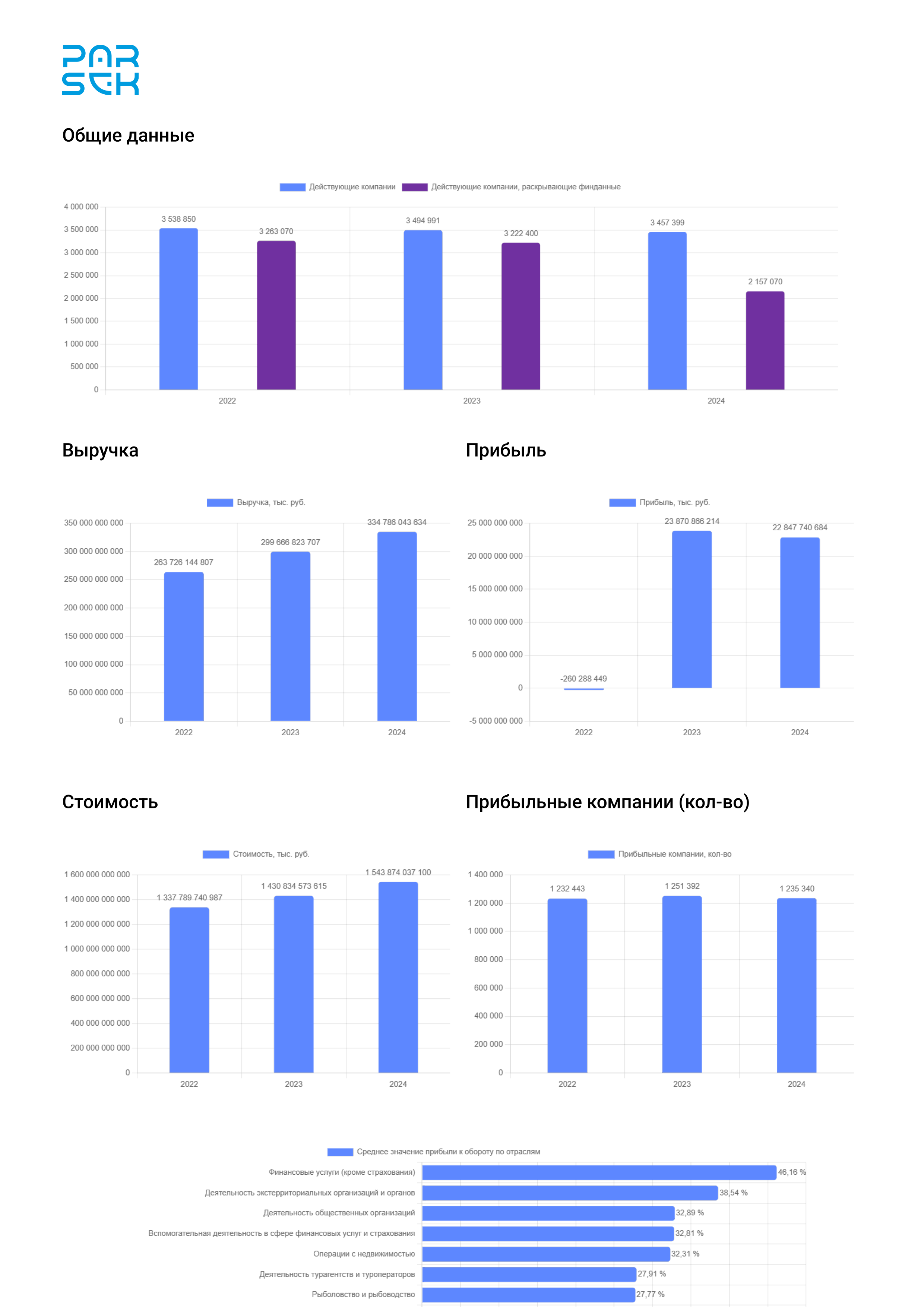- Анализ общей динамики выручки, прибыли и совокупной стоимости компаний